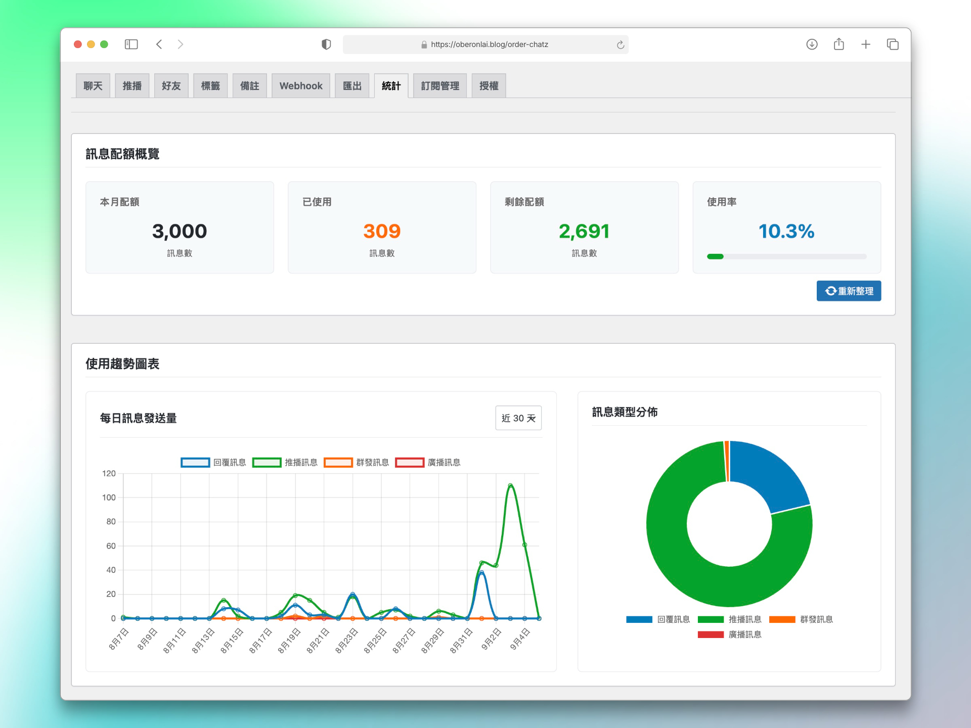 - 當訊息使用量剩餘不到 10% 時會出現通知提醒