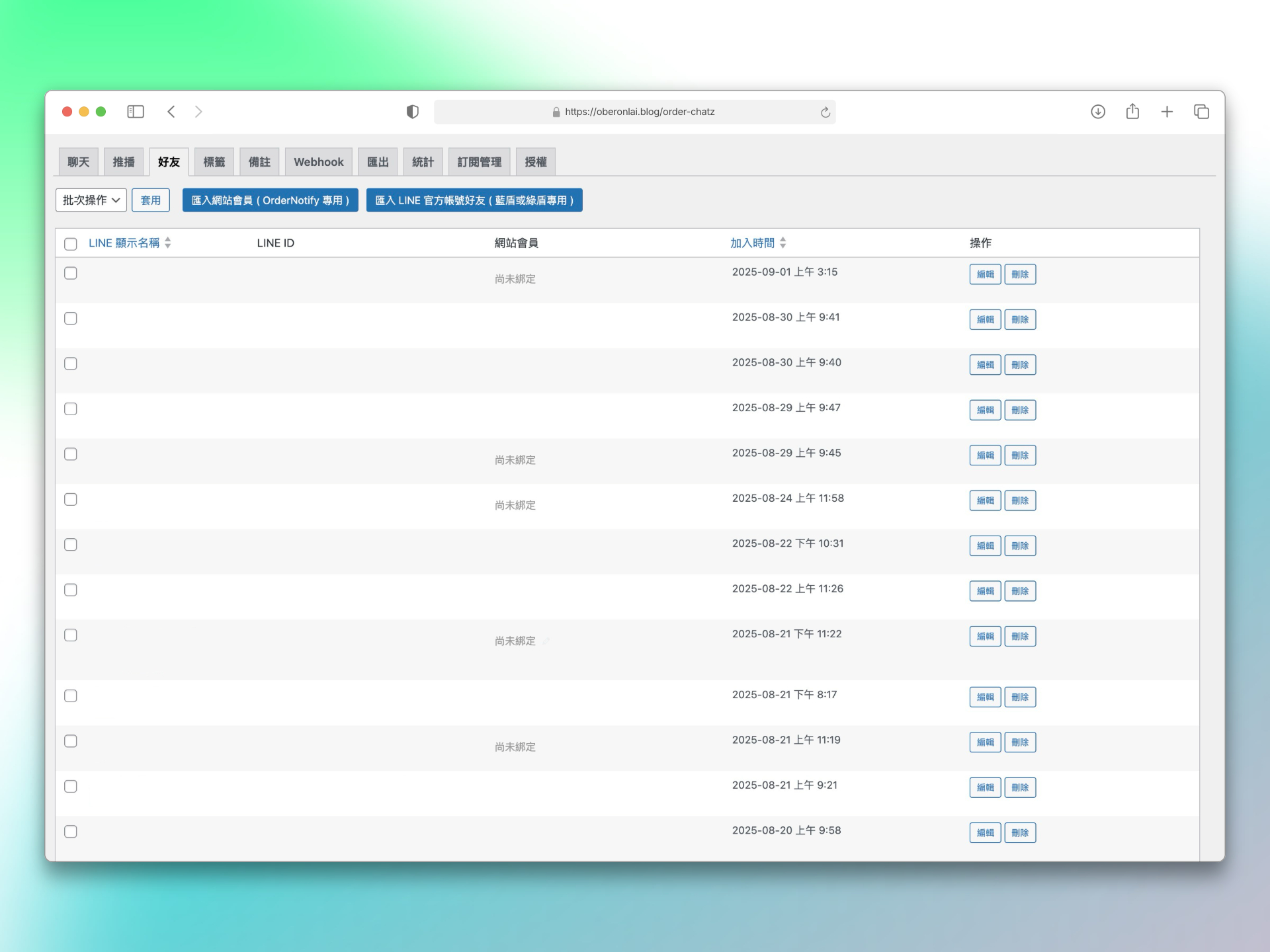 - 可直接匯入帶有 LINE user ID 的網站會員,OrderNotify 限定