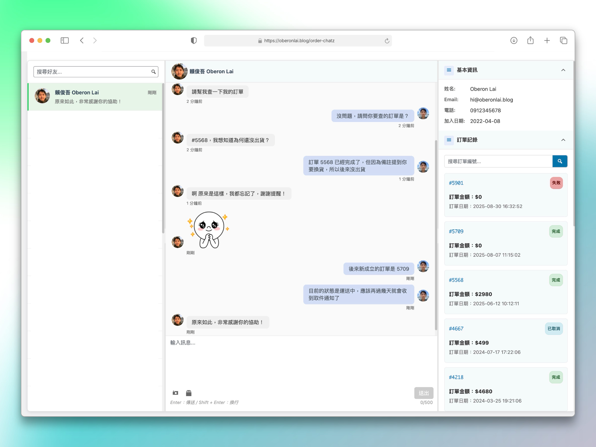 OrderChatz 是一款專為 WooCommerce 打造的客服管理工具,可以直接在後台或網頁 App 與 LINE 好友即時進行聊天互動,並整合訂單資訊以及推播功能的實用外掛。